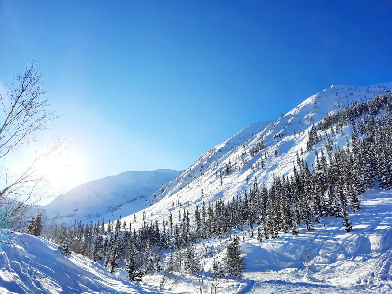 — Подъём (около 1 часа) к зимней поляне — наслаждаемся заснеженным лесом, фотографируемся у «снежных зефирок».